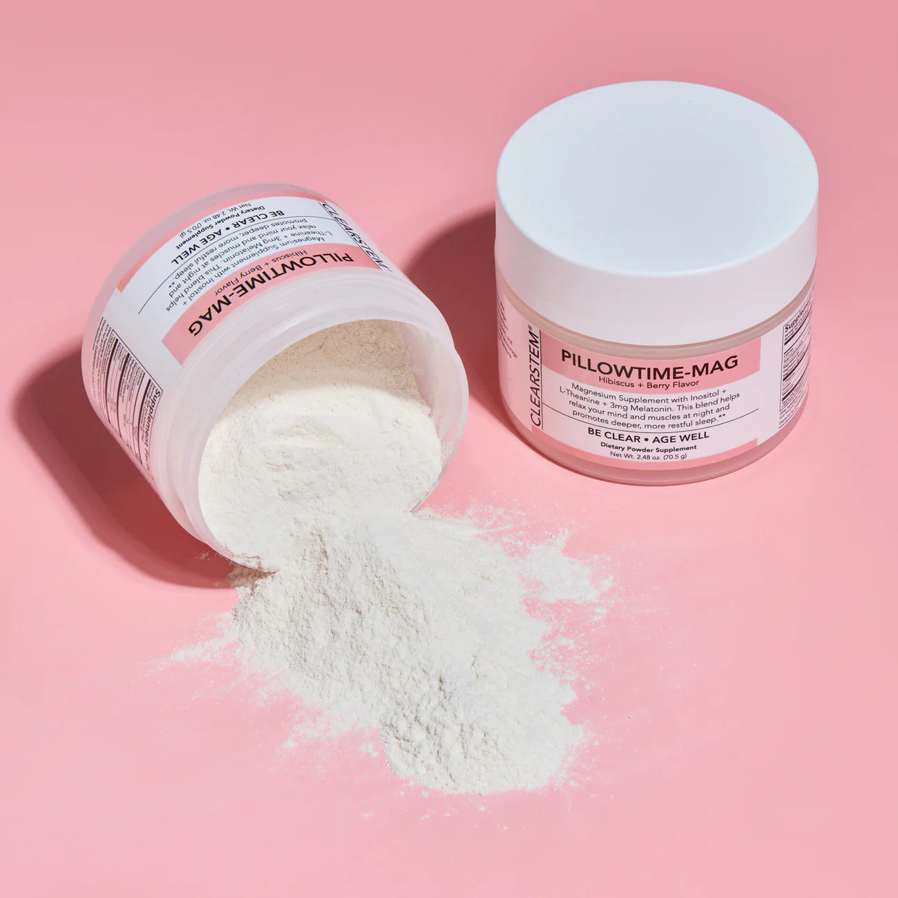 Benefits: Nightly use of PILLOWTIME delivers Inositol, Magnesium, and L-Theanine, all of which contribute to better sleep and stress response. PILLOWTIME helps your body build its magnesium stores, an essential mineral for nearly every process in the body, including skin & hormone health. By helping your body with detoxification, digestion, stress response, and hormone balance, it’s a powerful ally in your journey to clear skin and better aging.