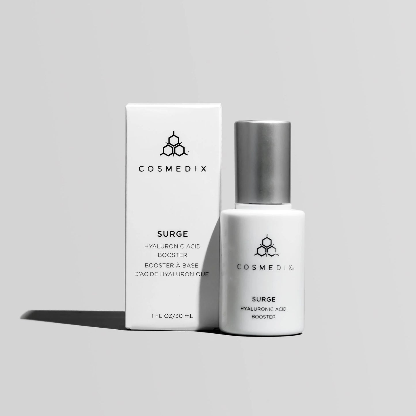 Give your daily skincare routine a surge of hydration! This ultra-dewy Hyaluronic Acid Booster deeply moisturizes dry, dehydrated skin with a specialized blend of hyaluronic acid, niacinamide and kiwi fruit water. With just a few drops, this luxe serum instantly refreshes and quickly absorbs into the skin, leaving behind nothing but an uber-hydrated complexion and a luminous glow—never a greasy or sticky film. Upon application, the hyaluronic acid works within the skin to rehydrate deeper layers and help visibly plump the skin, reducing the look of fine lines and wrinkles. Featuring an innovate self-loading cap for completely mess-free and sanitary application, Surge is the quick pick-me-up your skin needs to look more radiant, dewy and plump.