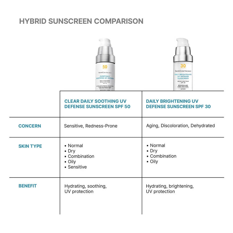 A daily transparent, non-comedogenic sunscreen featuring a mineral and chemical blend that helps soothe and hydrate sensitive and redness-prone skin. Clear Daily Soothing UV Defense SPF 50 Sunscreen helps to reduce the appearance of visible redness, improve skin texture and deliver all-day hydration. This sunscreen without white cast offers broad spectrum UVA/UVB protection for all skin tones.