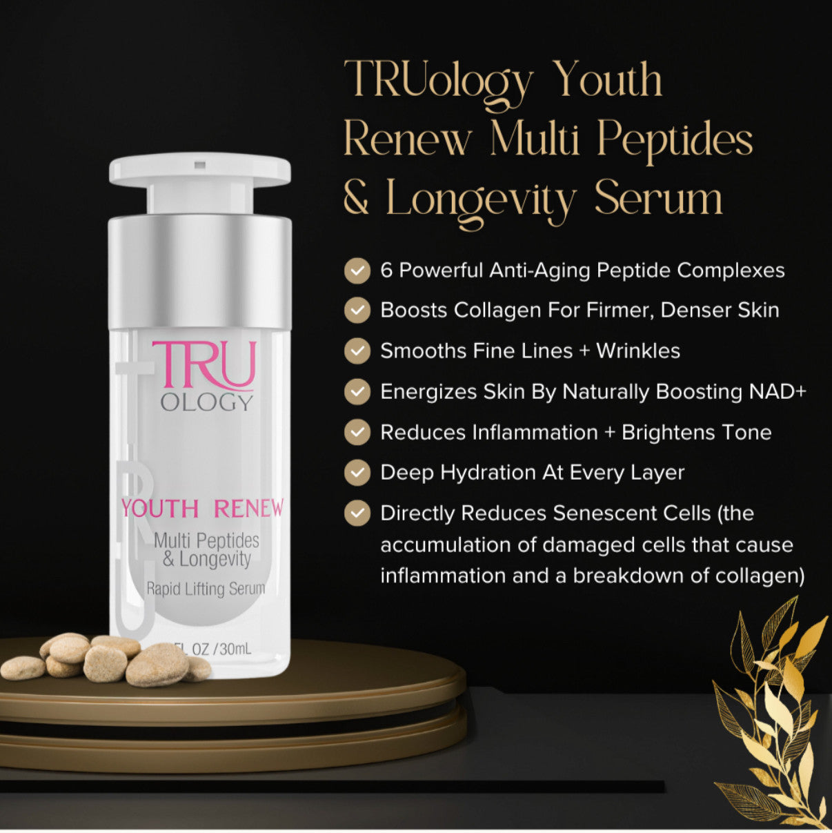 Truology Youth Renew is formulated like no ordinary serum—it’s a multi-pathway rejuvenation treatment engineered to target the full cascade of aging from the cellular level upward. This advanced formula combines next-generation peptides, pro-collagen actives, and longevity-boosting ingredients that work synergistically to deliver immediate smoothing and deep, long-term skin remodeling.